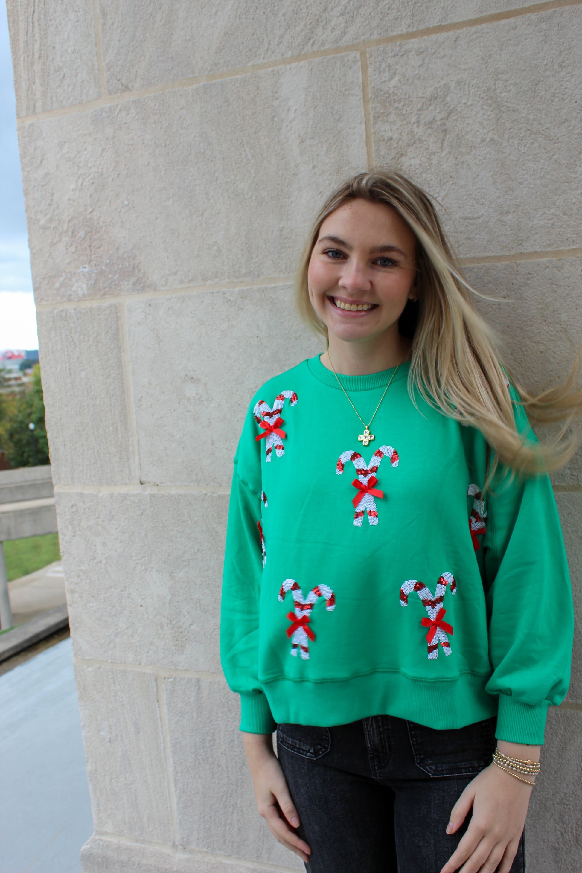 Introducing the Mary Square Christmas Candy Canes crewneck - an essential addition to your holiday wardrobe. Made with high-quality materials, this cozy sweater features a classic candy cane design that is sure to spread festive cheer. Snuggle up in style and embrace the holiday spirit with Mary Square.
