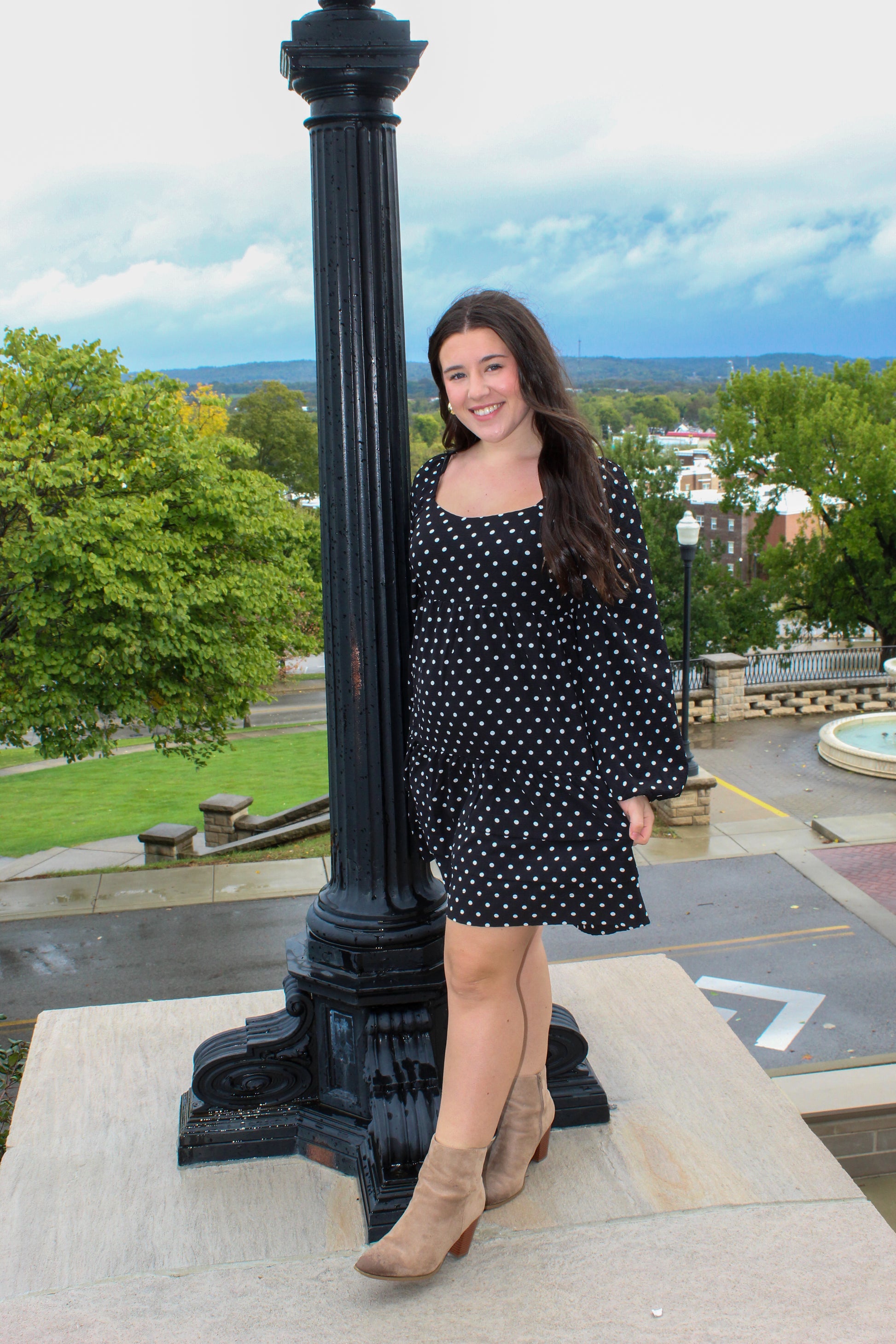 This Polka Dot Mid Dress features a sophisticated black and ivory color scheme and mid length design, perfect for any occasion. The comfortable sleeves add a touch of elegance and versatility. Upgrade your wardrobe with this timeless piece.